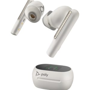 Plongez dans un monde rempli de sons et sans bruits de fond avec les écouteurs POLY Écouteurs sable blanc Voyager Free 60+ UC + adaptateur USB-A BT700 + étui de charge avec écran tactile. Conçus pour une utilisation professionnelle et quotidienne, ces écouteurs sans fil True Wireless offrent une annulation active du bruit adaptative pour une concentration maximale. Avec trois microphones par écouteur et la technologie WindSmart, vous serez parfaitement entendu même en extérieur. Profitez d'une clarté optimale lors de vos appels et de votre musique, avec une autonomie longue durée pour une journée entière d'utilisation.