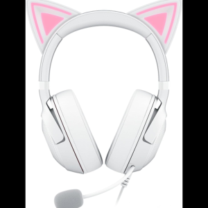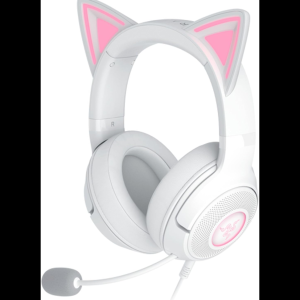 Affirme ton style unique avec le Razer Kraken Kitty V2 Quartz Pink, le casque filaire RGB conçu pour les gamers et streamers qui aiment se démarquer. Ses oreilles de chat iconiques et son éclairage réactif Razer Chroma RGB créent une expérience visuelle dynamique qui interagit avec tes streams. Profite d’un son immersif 7.1 Surround et de haut-parleurs TriForce 40 mm offrant des aigus nets, des médiums équilibrés et des basses puissantes. Le micro cardioïde HyperClear capture ta voix avec clarté tout en réduisant le bruit ambiant. Avec ses coussinets en tissu hybride et similicuir, il assure un confort longue durée pour des sessions intenses et stylées.