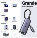 Adaptateur Ugreen Aliminium USB-C vers RJ45 1000Mbps (50737)