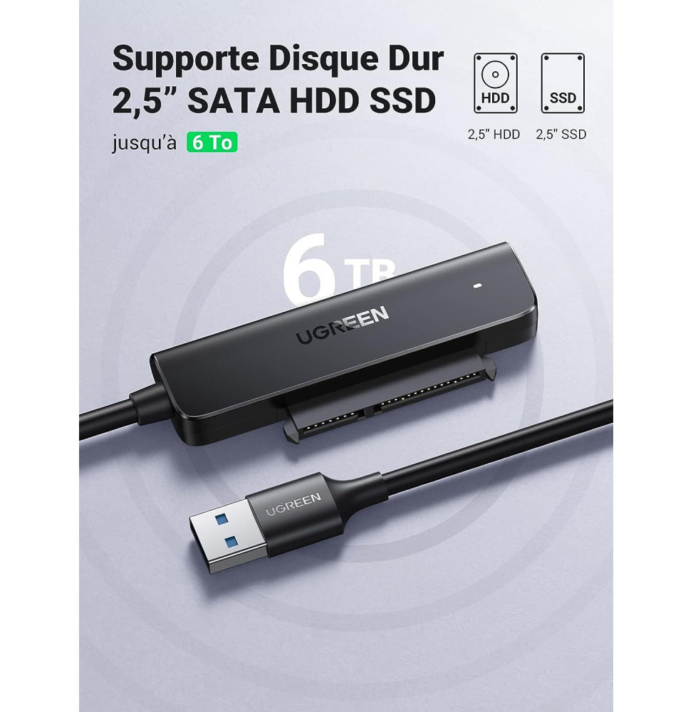 Adaptateur Ugreen Câble SATA USB 3.0 pour SSD et Disques Durs 2,5 Pouces (70609)