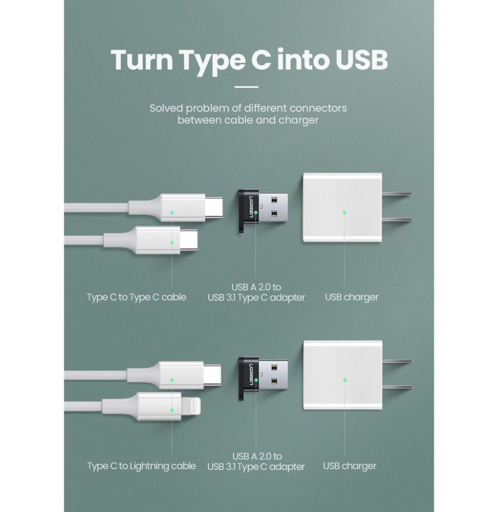 Adaptateur Ugreen USB-A Mâle vers USB-C Femelle (50568)