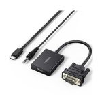 Transformez la sortie VGA de votre ordinateur en une connexion HDMI avec l’adaptateur unidirectionnel Ugreen. Connectez facilement votre PC à un téléviseur, projecteur ou moniteur HDMI. Ce produit inclut un port USB-C pour l’alimentation et une prise mini-jack 3,5 mm pour l’audio. Bénéficiez d’une meilleure expérience visuelle et sonore sans souci de compatibilité grâce à cet adaptateur Ugreen. Améliorez votre connectivité dès aujourd’hui !