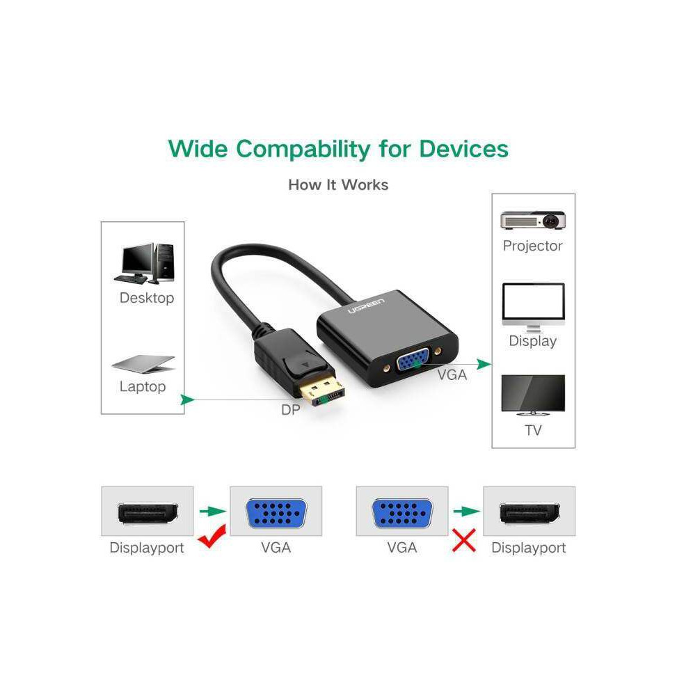 Accueil Accessoire & Périphérique Accessoires ordinateur Câble et adaptateur Câble Ugreen DisplayPort Mâle vers VGA Femelle Convertisseur (20415)