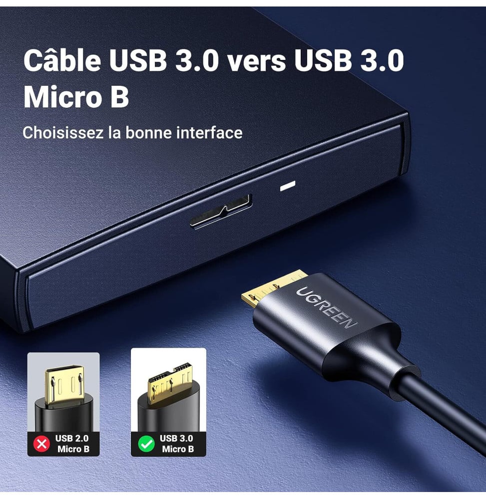 Câble Ugreen USB 3.0 vers Micro USB-B – 0.5 mètre (10840)