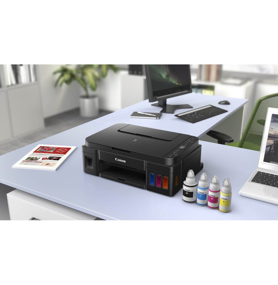 Livrée avec encre noire jusqu'à 18 000 pages et 8000 pages en couleur (3 bouteilles d'encre noire de 135ml; 3 Bouteilles d’encre couleurs individuelles de 70ml)