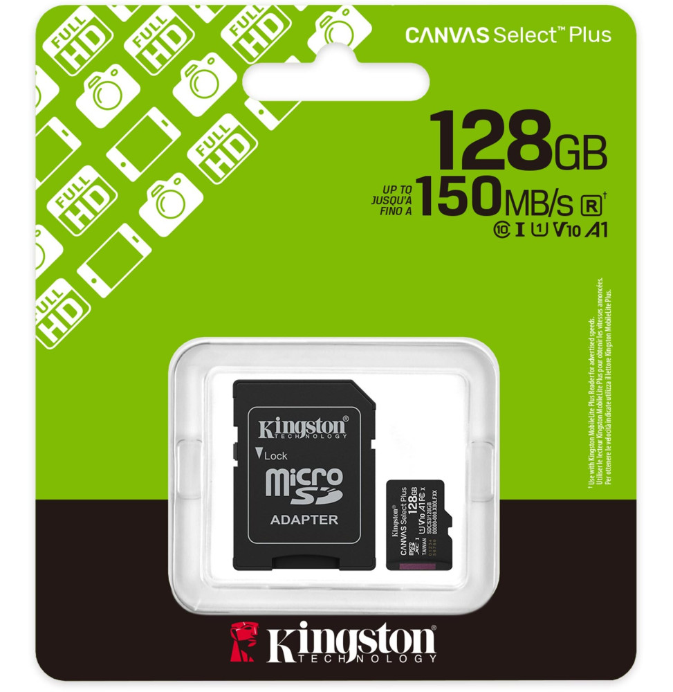 Carte mémoire Kingston Canvas Select Plus 128 Go microSDXC UHS-I Classe 10 Gen3 + Adapter (SDCS3/128GB)