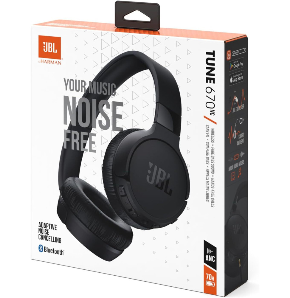 Accueil Image & Son TV & Son Casque & Ecouteur Casque Bluetooth JBL Tune 670NC à réduction de bruit – Noir (JBLT670NCBLK)