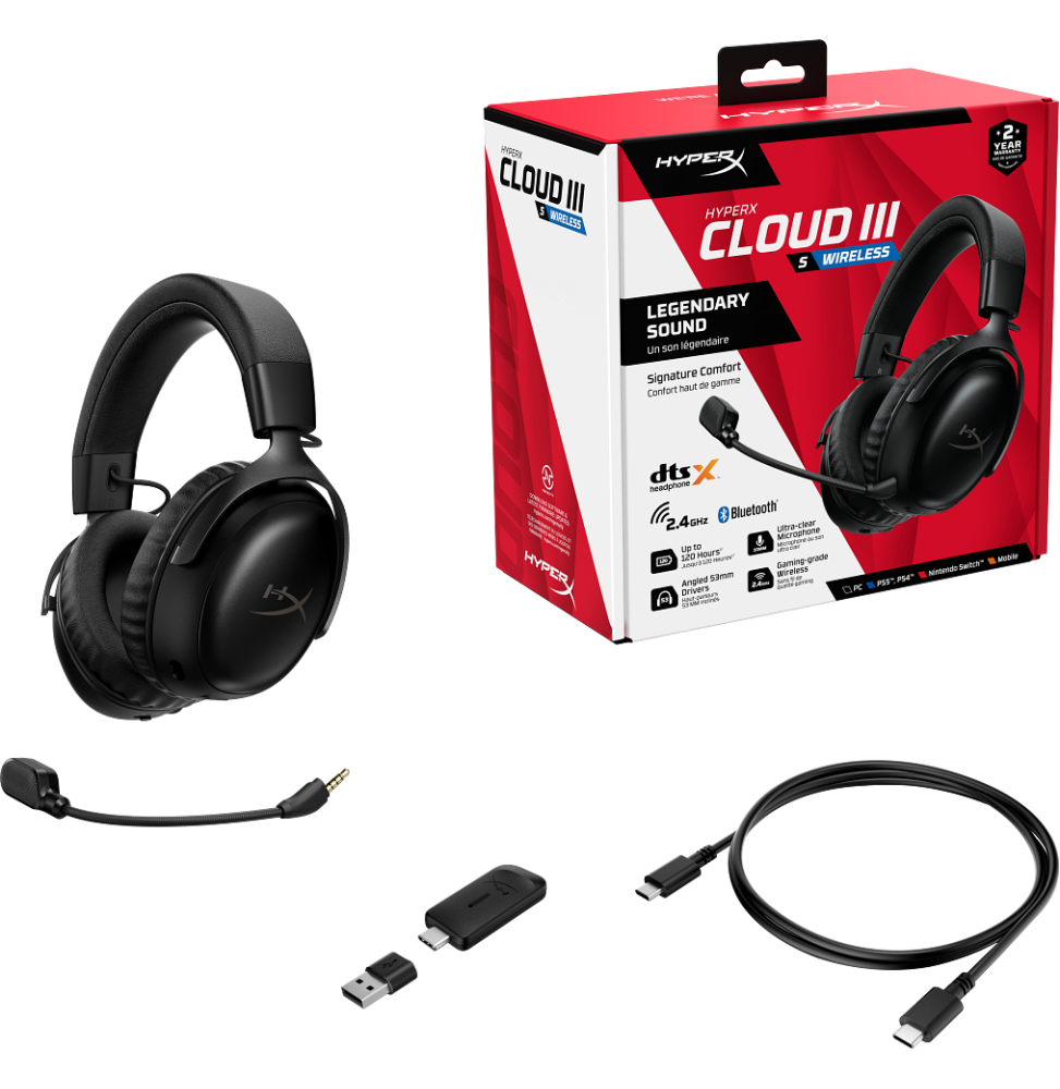 Plonge au cœur de ton jeu avec le HyperX Cloud III S Wireless, le casque gaming pensé pour l’endurance et la performance. Grâce à sa connexion 2,4 GHz, Bluetooth ou Instant Pair, profite d’une liberté totale sur tous tes appareils. Son autonomie exceptionnelle jusqu’à 120 heures t’assure des sessions prolongées sans interruption. Les haut-parleurs inclinés de 53 mm offrent un son précis et immersif, sublimé par le DTS Headphone:X pour une spatialisation 3D réaliste. Confort légendaire HyperX, micro amovible, structure en aluminium durable et commandes intuitives : tout est conçu pour les joueurs exigeants en quête d’immersion et de fiabilité.