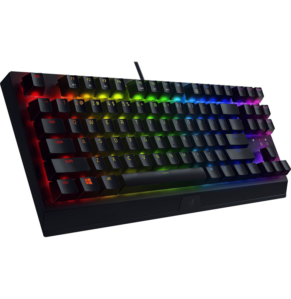 Plongez au cœur de la performance avec le Razer BlackWidow V3 Tenkeyless, le clavier gamer pensé pour la précision et la vitesse. Conçu sans pavé numérique, il libère de l’espace pour des mouvements de souris plus fluides, tout en conservant la puissance emblématique de Razer™. Ses switchs mécaniques verts ou jaunes offrent une réactivité exceptionnelle, un toucher précis et une durabilité jusqu’à 80 millions de frappes. Sa structure en aluminium robuste et son éclairage Razer Chroma™ RGB personnalisable font de chaque partie une expérience immersive. Compact, fiable et stylé, il redéfinit la performance pour les gamers exigeants.