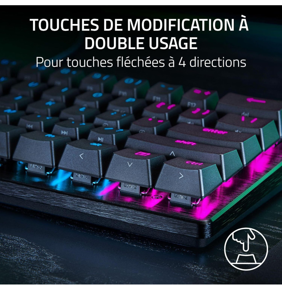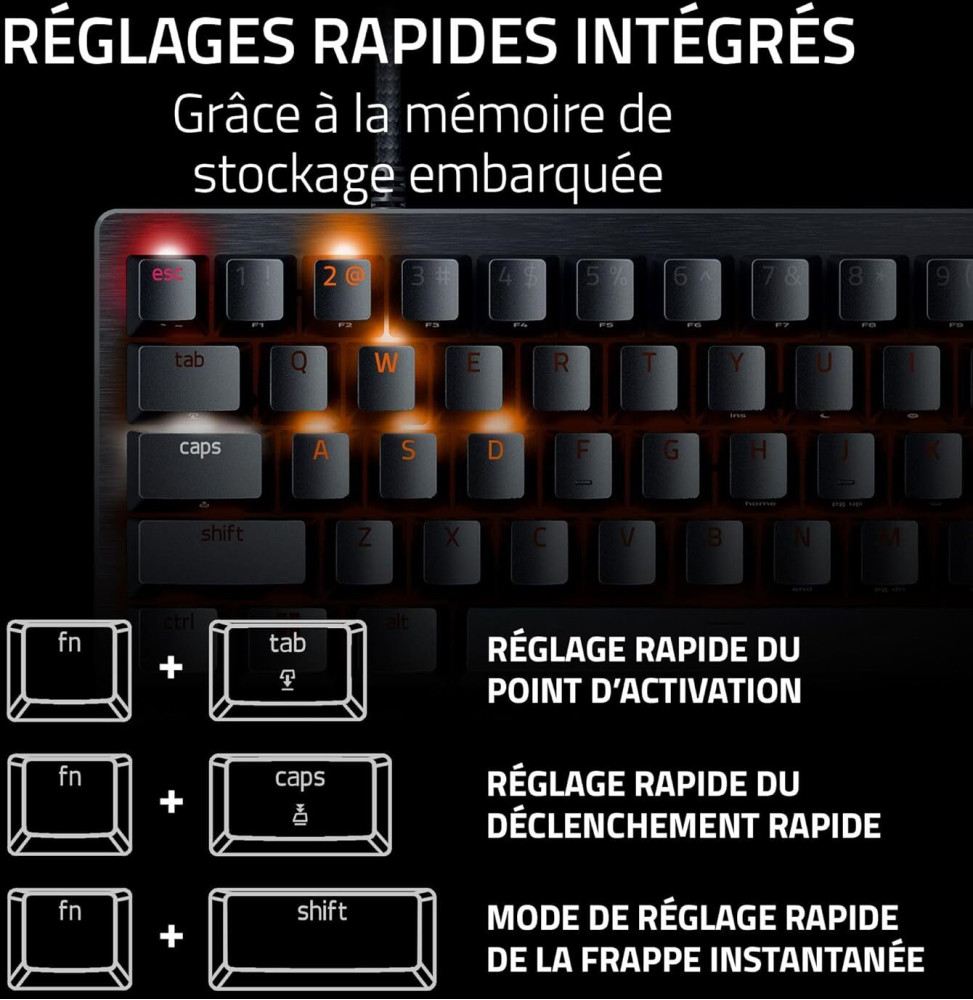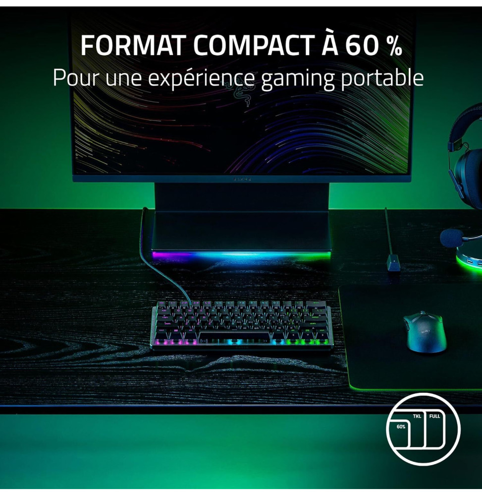 Conçu pour les joueurs exigeants, le Razer Huntsman V3 Pro Mini redéfinit la vitesse et la précision dans le gaming compétitif. Grâce à ses switches optiques analogiques de 2e génération, chaque frappe est instantanée, fluide et réglable entre 0,1 et 4,0 mm selon votre style. Son mode déclenchement rapide et la technologie Razer Snap Tap offrent un avantage décisif dans les FPS les plus intenses. Compact à 60 %, il libère de l’espace pour vos mouvements tout en garantissant une portabilité parfaite pour les tournois. Avec ses touches PBT texturées, son rétroéclairage RVB dynamique et son repose-poignet magnétique, ce clavier offre performance, confort et durabilité inégalés.