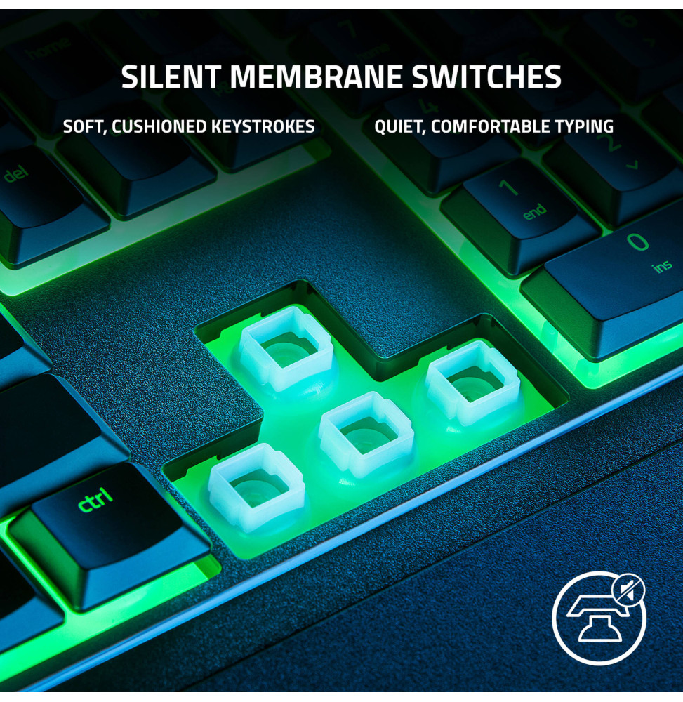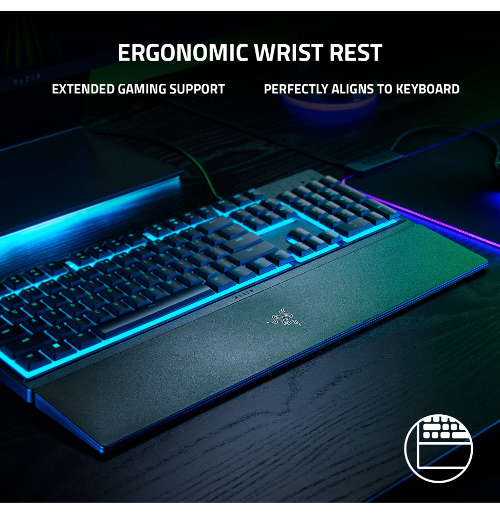 Élevez votre expérience de jeu avec le clavier gamer Razer Ornata V3 X RGB. Conçu pour le confort et la performance, ce clavier AZERTY filaire allie touches silencieuses à membrane et design profil bas pour une frappe fluide et discrète. Grâce au repos-poignet ergonomique inclus, profitez d’un soutien optimal lors de vos longues sessions. La résistance aux éclaboussures et les touches durables assurent une fiabilité à toute épreuve. Personnalisez votre ambiance avec le Razer Chroma RGB et bénéficiez de macros programmables à la volée pour une réactivité maximale. Un choix idéal pour les gamers recherchant confort, efficacité et esthétique immersive.