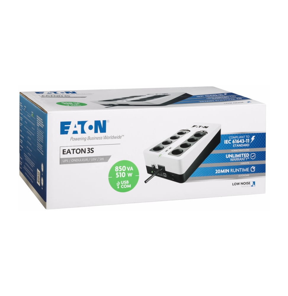 Onduleur Off-Line UPS Eaton 3S gén2 – 420 W / 700 VA – 8 prises FR + 2 USB (3S700F)