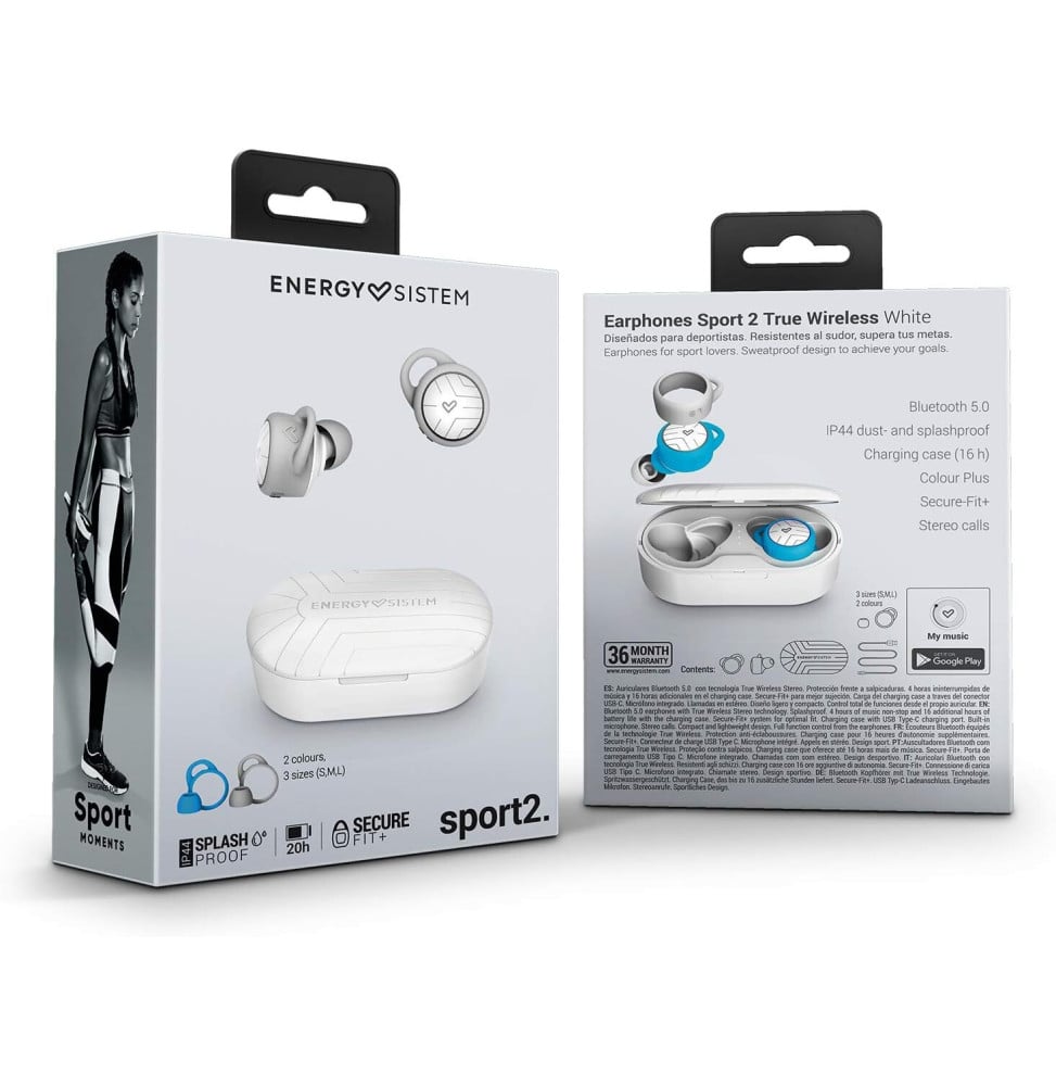 Les écouteurs Energy Sistem Sport 2 True Wireless – Blanc allient performance et confort 1 pour accompagner vos activités sportives. Dotés de la technologie True Wireless Stereo et Bluetooth 5.0, ils offrent une connexion stable et une liberté totale de mouvement. Le design Secure-Fit+ garantit un maintien optimal, tandis que leur certification IP44 protège contre la sueur et les éclaboussures. Profitez jusqu’à 20 heures d’autonomie grâce au boîtier de charge compact. Livrés avec embouts et fixations interchangeables pour un style personnalisé.
