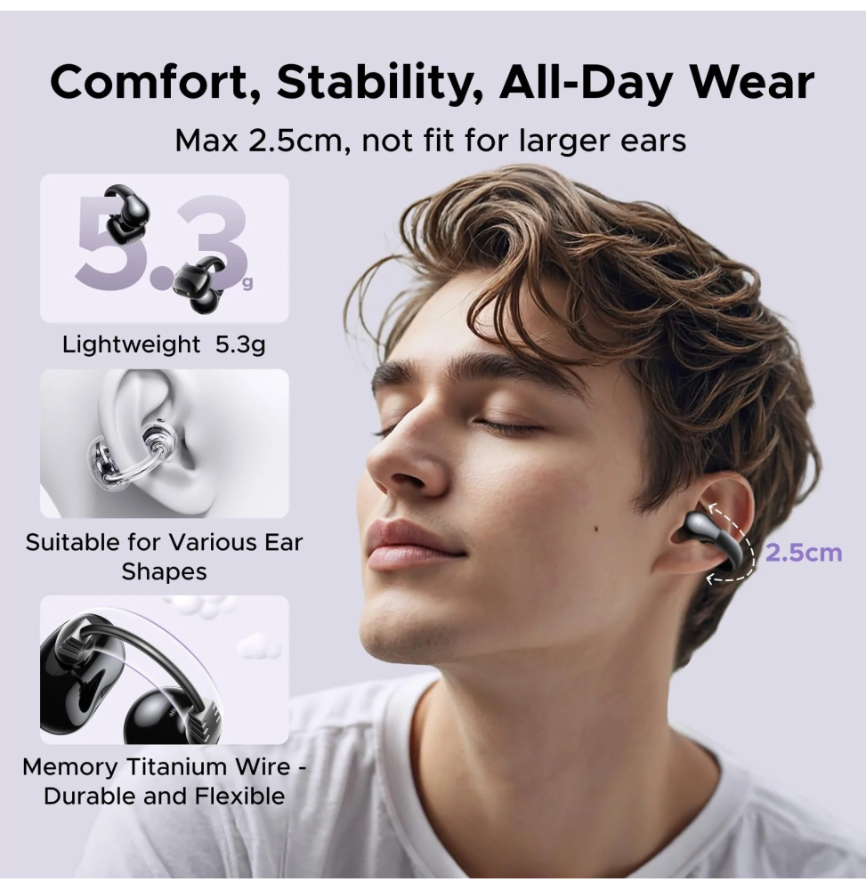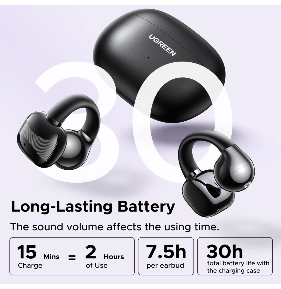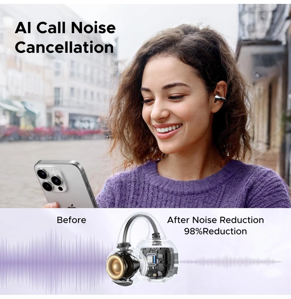 Profitez d’une expérience audio innovante avec les écouteurs sans fil Ugreen HiTune S3, conçus pour allier confort, sécurité et performance. Leur design open-ear ultra léger s’adapte parfaitement à votre oreille, idéal pour le sport ou les déplacements tout en restant attentif à votre environnement. Grâce aux haut-parleurs 12 mm et à la réduction de bruit IA, bénéficiez d’un son équilibré et d’appels clairs. Avec jusqu’à 30 heures d’autonomie, une connexion Bluetooth 5.4 stable et une résistance IPX5, ces écouteurs sont pensés pour un usage quotidien intensif, sans compromis sur la qualité ni la praticité.