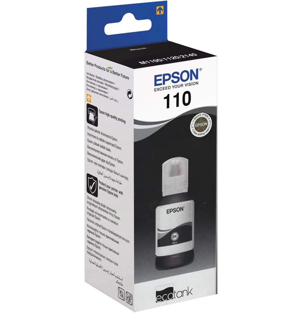 Accueil Impression Consommables Bouteille d'encre Epson 110 Noir – Bouteille d'encre Epson d'origine (C13T03P14A)