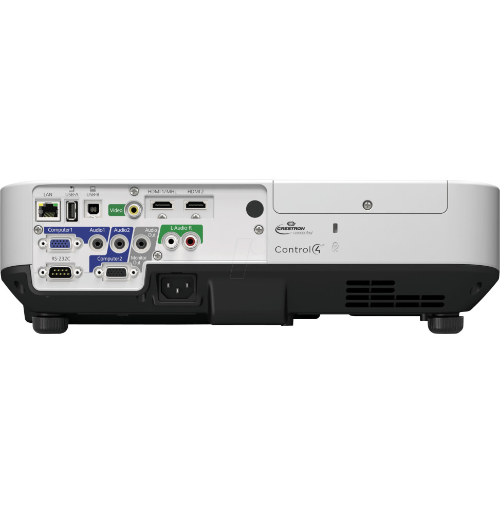 - A/V mute slide, Mise sous tension automatique, Sélection d’entrée automatique, Correction de trapèze automatique, Haut-parleur intégré, Compatible CEC, Alimentation/coupure directe, Compatible avec la Document Camera, Ajustement de l’écran, Figer l’image, Écran d’accueil, JPEG Viewer (visualiseur d’images), Lampe longue durée, Administration du réseau, Fonction de copie OSD, Sans PC, Application iProjection pour Chromebook, Quick Corner, Affichage en miroir, Diaporama, Fonction « split screen » (écran divisé), Wi-Fi en option, Application iProjection