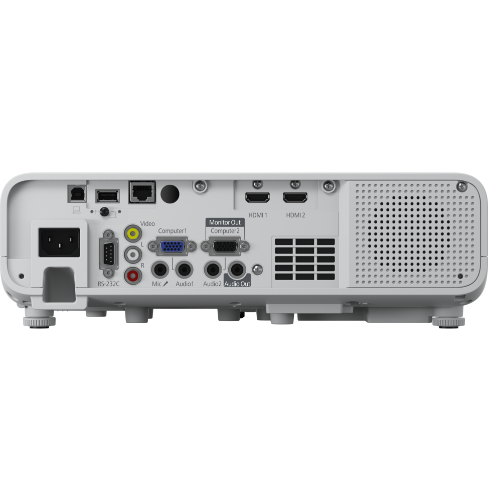 - USB 2.0-A, USB 2.0, RS-232C, Interface Ethernet (100 Base-TX/10 Base-T), Wi-Fi Direct, Entrée VGA (2x), Sortie VGA, Entrée composite, Miracast, Prise jack de sortie, Prise jack d’entrée (2x), Câble RCA de sortie audio, entrée micro, HDMI (HDCP 2.2) (2x), LAN IEEE 802.11a/b/g/n/ac sans fil