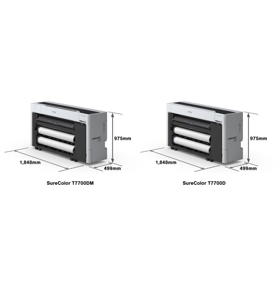 - Adaptateur secteur, Adobe PostScript 3, jeux d’encre, Manuel d’installation / de sécurité, Réservoirs de maintenance, Système d’alimentation rouleau 44″, Instructions de montage, Imprimante/scanner gamme T SureColor, Documents de garantie