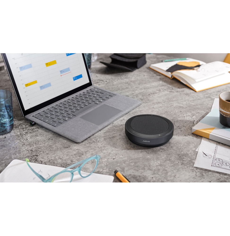 Améliorez vos réunions avec le Jabra Speak2 75, haut-parleur de conférence portable certifié Microsoft Teams. Doté d’un son super large bande et d’un haut-parleur 65mm, il offre une clarté audio exceptionnelle. Son micro omnidirectionnel capte les voix à 360°, tandis que la technologie de normalisation assure un volume équilibré pour tous. Connectivité Bluetooth jusqu’à 30m, autonomie de 32h et résistance IP64 à l’eau et à la poussière font de ce haut-parleur un allié robuste pour des conférences fluides où que vous soyez.