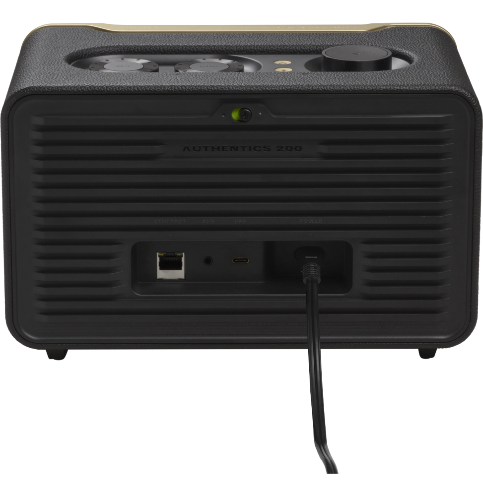 Plongez au cœur d’un son authentique avec le Haut-Parleur JBL Authentics 200 Noir, alliant puissance, élégance et technologie. Ses deux tweeters de 25 mm et son woofer de 5″ offrent un son stéréo clair et des basses profondes qui subliment chaque note. Inspiré du design rétro emblématique de JBL, son châssis en aluminium et sa finition cuir ajoutent une touche raffinée à votre intérieur. Grâce au Wi-Fi intégré, profitez de vos musiques via AirPlay, Chromecast ou Spotify Connect, sans interruption. Compact, connecté et intemporel, le JBL Authentics 200 transforme chaque espace en scène sonore exceptionnelle.