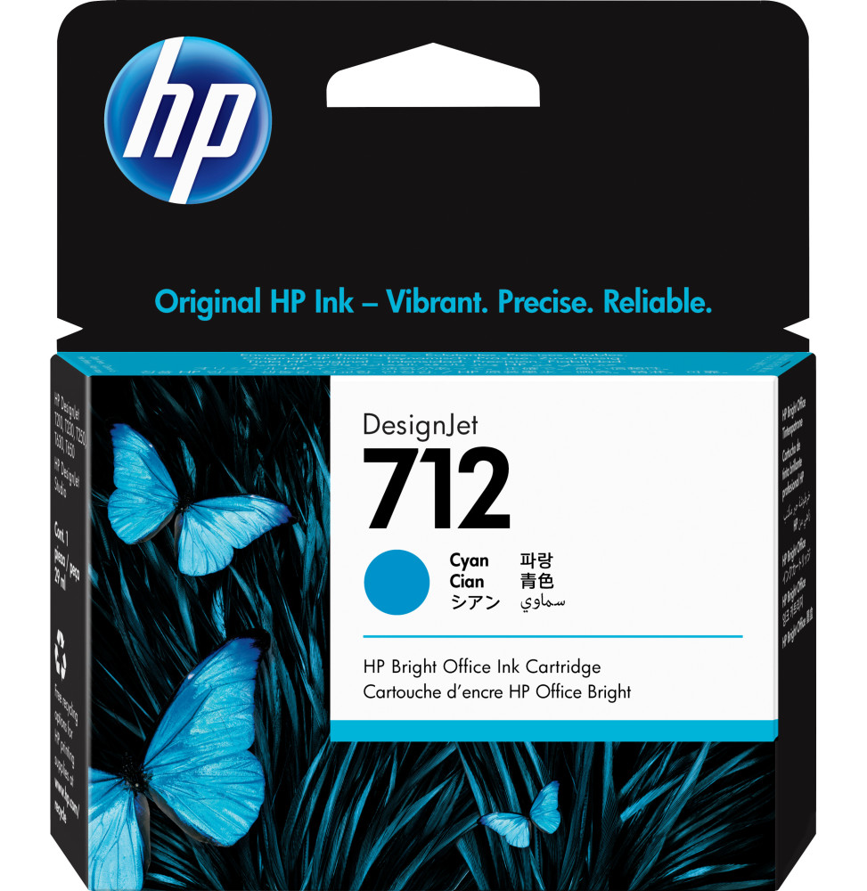 Accueil Impression Consommables Cartouche d'encre HP 712 Cyan – Cartouche d'encre HP d'origine (3ED67A)