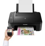 - Imprimante tout-en-un Canon PIXMA TS3140 en noir, 2 cartouches FINE, Cordon d’alimentation, CD-ROM d’installation (CD uniquement pour Windows), Manuels et autres documents