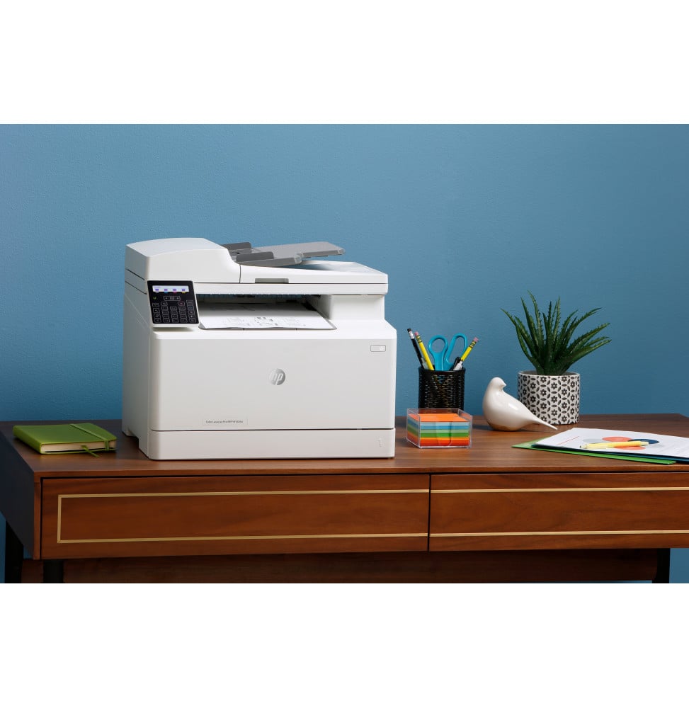 Imprimante multifonction HP Color LaserJet Pro M183fw; Cartouches d’introduction HP LaserJet : rendement des pages composites couleur 700 (C/J/M) et rendement de 800 pages noir; Guide d’installation; Cordon d’alimentation; Câble USB; Cordon téléphonique
