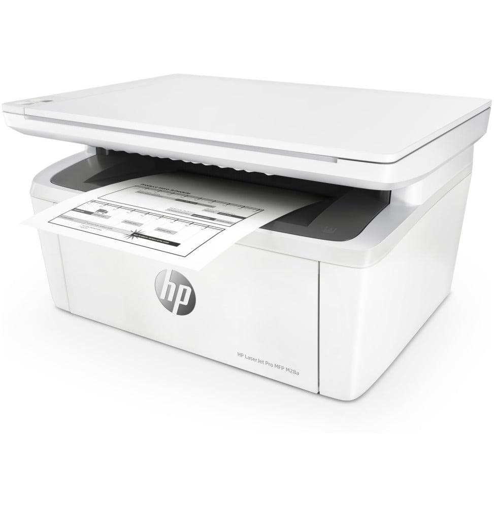 - Imprimante HP LaserJet Pro M28a Toner de démarrage HP LaserJet noir préinstallé authentique (500 pages) Guide de démarrage Affiche d’installation Brochure d’assistance Guide de garantie Documentation et pilotes logiciels sur CD-ROM Cordon d’alimentation
