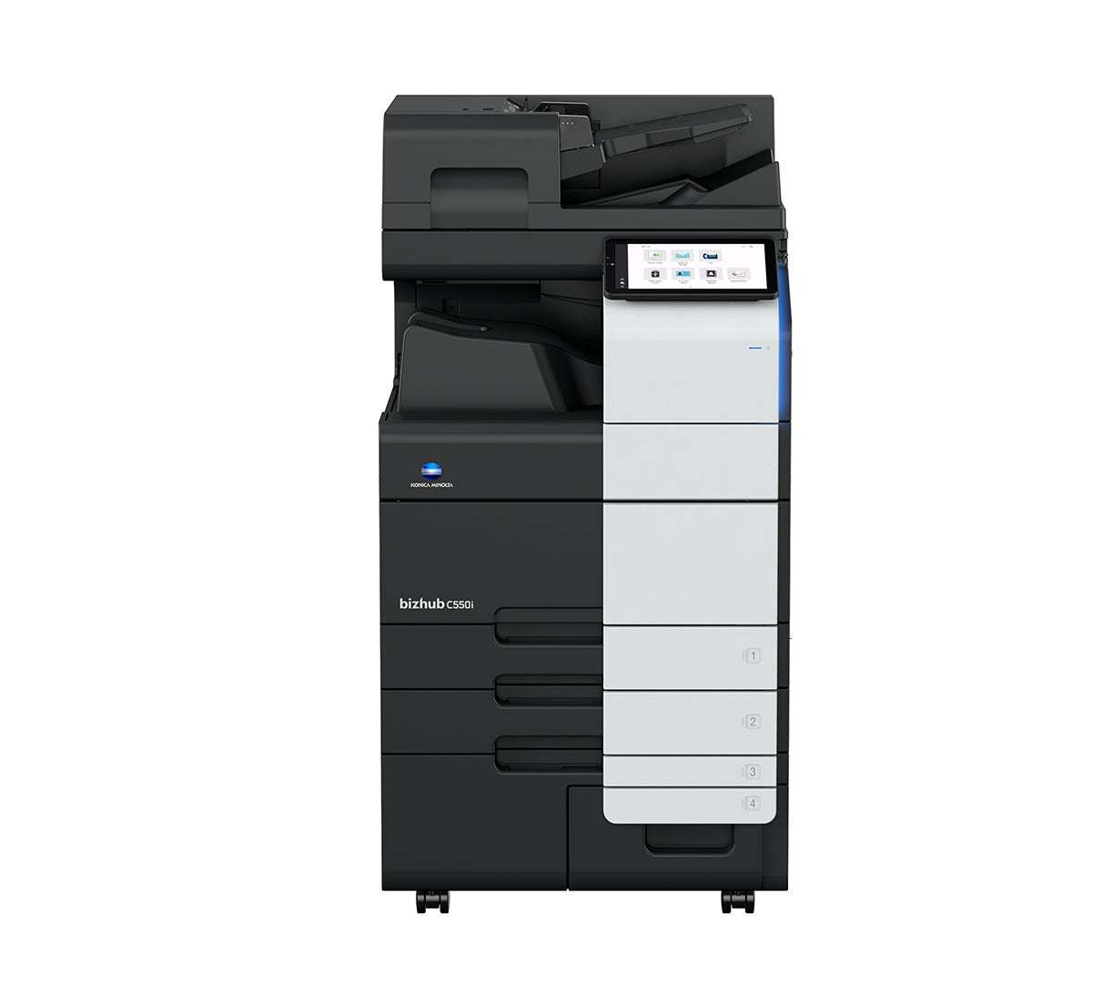 Copieur-imprimante numérique couleur 55 ppm couleur/55 ppm N&B ; Chargeur Dual Scan 300 feuilles de 160 opm en recto et 280 opm en recto verso en standard ; Unité recto-verso incluse ; 2 Magasins de 500 feuilles ; By-pass 150 feuilles ; Mémoire standard 8 Go ; Disque dur 256 Go ; Contrôleur EmperonTM PCL6, PostScript 3, PDF1,7 et XPS support ; Interfaces Ethernet 10/100/1000 Base T et USB 2.0 ; Interface USB pour scan/impression/enregistrement depuis une clé USB ; Kit de cryptage du disque dur ; 1 stylet par panneau de commande ; CONFIGURATION INCLUANT : Meuble support DK-516 ; Réceptacle copie OT-513 ; 1 jeu de Toner