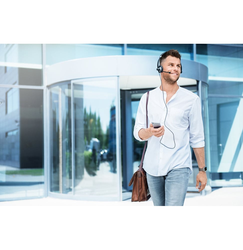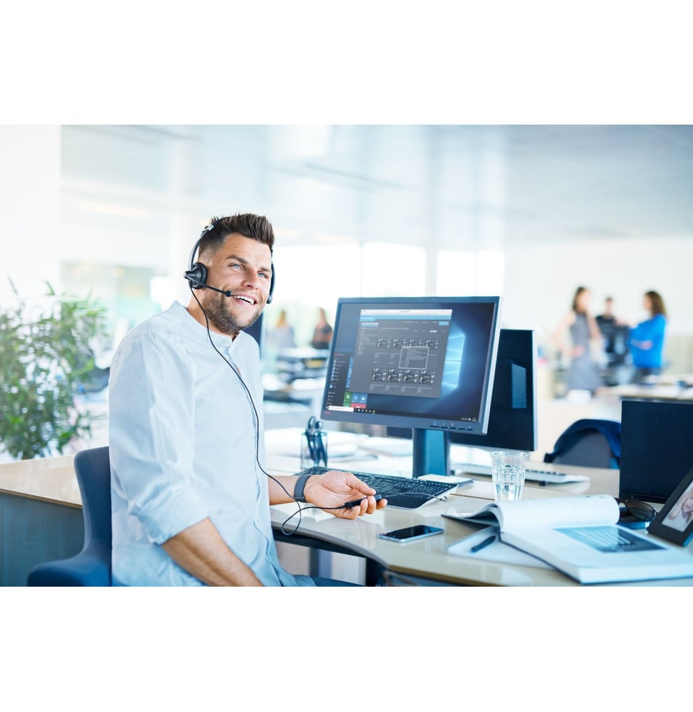 Le micro-casque filaire Epos SC 75 USB MS allie performance audio et confort professionnel pour des communications claires et sans distraction. Conçu pour les environnements exigeants, il offre un son stéréo précis et un micro antibruit qui élimine les interférences pour des échanges nets, même en open space. Grâce à sa double connectivité USB-A et jack 3,5 mm, il s’adapte facilement à tous vos appareils. Son arceau ajustable et ses coussinets doux garantissent un port prolongé sans inconfort. Certifié Microsoft Teams et compatible avec les principales plateformes de collaboration, c’est l’outil idéal pour des performances audio fiables au quotidien.