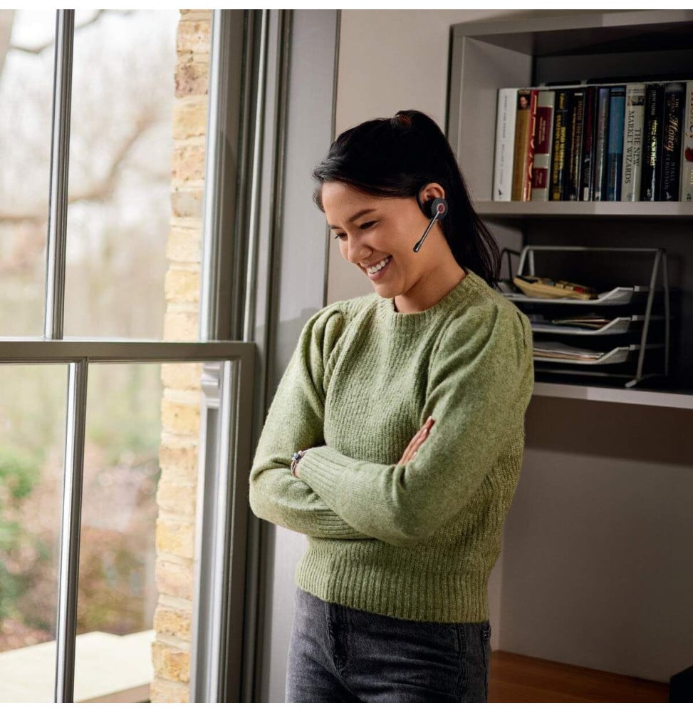 Restez mobile tout en gardant un contrôle total sur vos appels professionnels. Le Jabra Engage 45 SE Convertible est un micro-casque sans fil DECT conçu pour les environnements intensifs. Ultra léger (21 g), il se porte en oreillette, tour d’oreille ou serre-tête pour un confort longue durée. Sa portée sans fil jusqu’à 180 m et sa connexion RJ9 dédiée aux téléphones de bureau garantissent liberté et stabilité. Grâce au chiffrement DECT 256 bits et au micro antibruit double, vos conversations restent claires et sécurisées. Autonomie de 9 heures, commandes intégrées et busy light : une solution performante qui optimise productivité, mobilité et qualité d’appel.