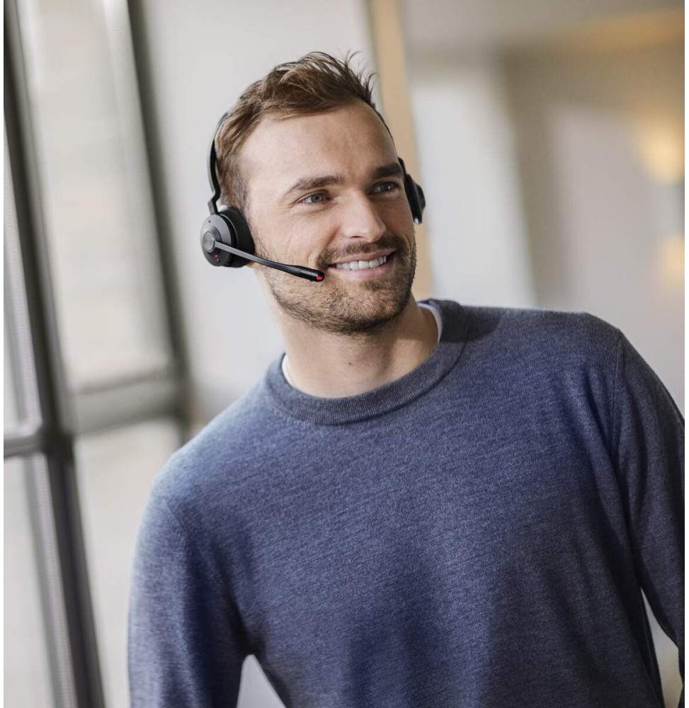 Optimisez chaque appel avec le Jabra Engage 45 SE Mono, le micro-casque sans fil professionnel conçu pour les environnements exigeants. Grâce à sa connectivité DECT sécurisée et sa portée jusqu’à 150 mètres, profitez d’une liberté totale de mouvement sans compromettre la qualité audio. Son double microphone antibruit garantit des conversations claires, même en open space ou centre d’appels. Léger (57 g) et confortable avec coussinets en simili-cuir, il accompagne vos journées intensives avec 13 heures d’autonomie. Compatible UC et téléphones fixes via RJ, il améliore productivité, concentration et image professionnelle, tout en assurant sécurité acoustique avec PeakStop et SafeTone 2.0.
