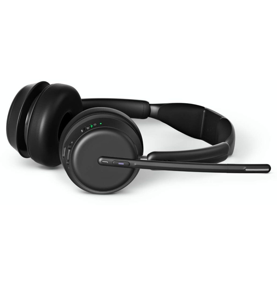 Le micro-casque sans fil Bluetooth EPOS IMPACT 1061T transforme votre façon de communiquer au travail. Conçu pour les professionnels exigeants, il combine performance audio exceptionnelle et confort longue durée grâce à ses écouteurs stéréo en simili-cuir et à son arceau léger. Ses 4 microphones antibruit assurent une voix claire, même dans les environnements bruyants, tandis que la base de chargement à induction simplifie le rechargement au quotidien. Profitez d’une portée sans fil de 30 m, de 19 heures d’autonomie et d’une certification Microsoft Teams, idéale pour vos appels et visioconférences. Une solution professionnelle fiable, élégante et performante.