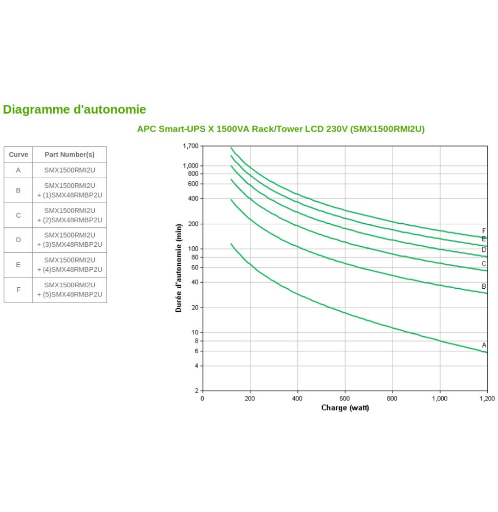 - 50% de charge (600 Watts) : 17 minutes / 70% de charge (840 Watts) : 10 minutes