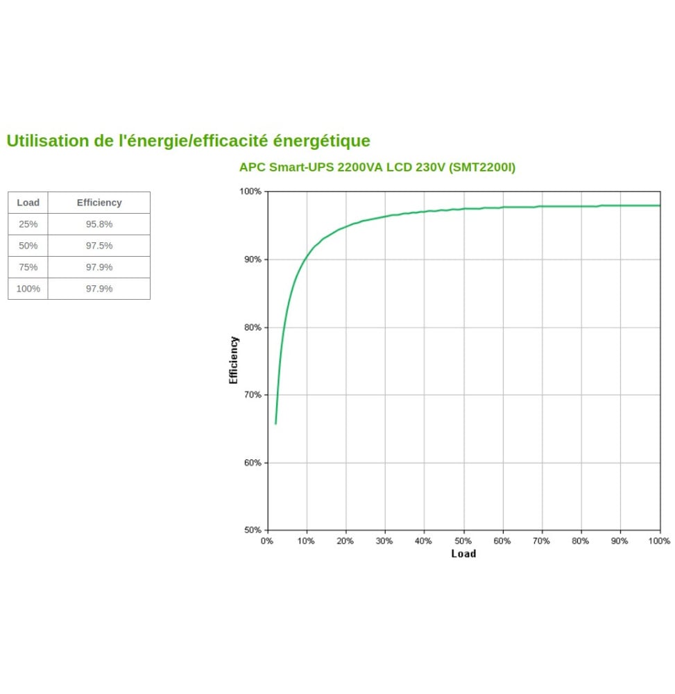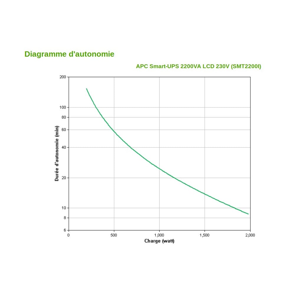 - 50% de charge (990 Watts) : 24 minutes / 70% de charge (1386 Watts) : 15 minutes