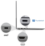 1x USB-A (USB 5Gbps / USB 3.2 Gen 1) 1x USB-A (USB 5Gbps / USB 3.2 Gen 1), Always On 1x USB-C® (USB 10Gbps / USB 3.2 Gen 2), with USB PD 3.0 and DisplayPort™ 1.4 1x USB-C® (Thunderbolt™ 4 / USB4® 40Gbps), with USB PD 3.0 and DisplayPort™ 2.1 1x HDMI® 2.1, up to 4K/60Hz 1x Headphone / microphone combo jack (3.5mm) 1x Ethernet (RJ-45) 1x SD card reader