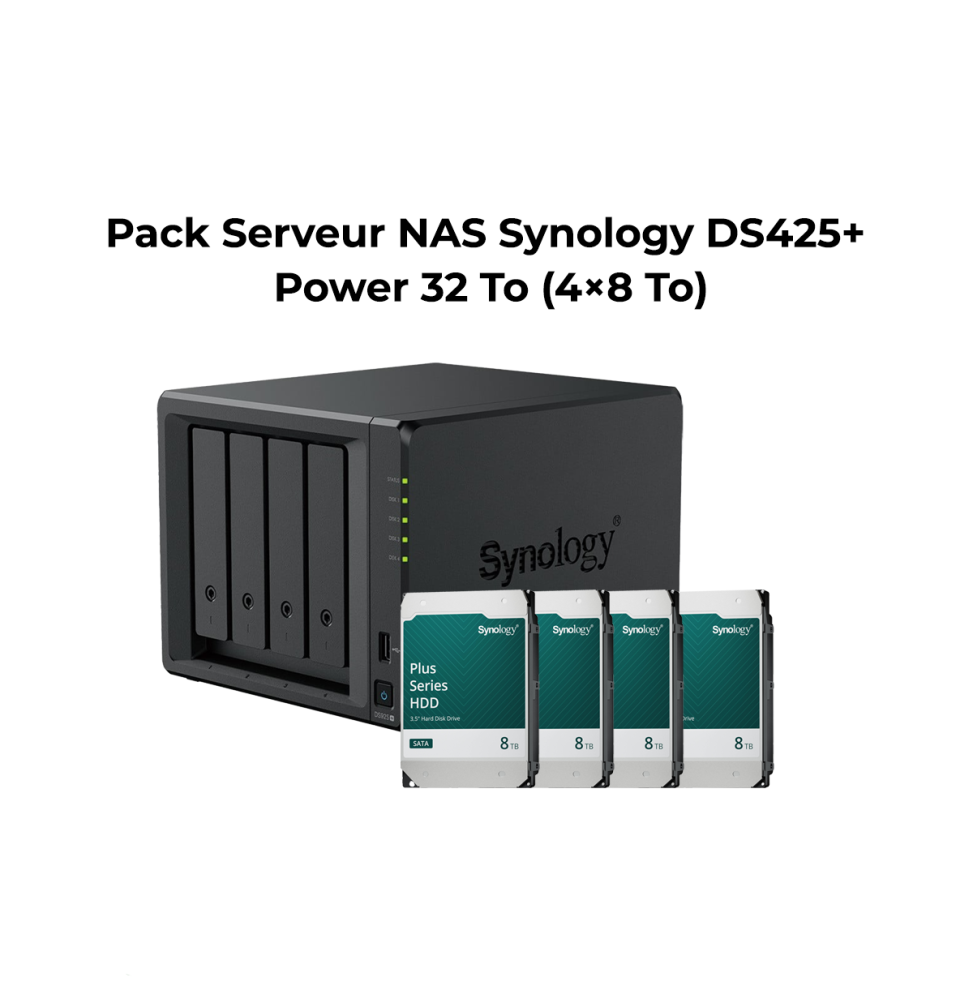 Pack Serveur NAS 2 baies Synology DiskStation® DS425+ Power 32 To (4×8 To)