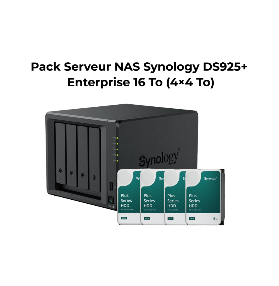 Pack Serveur NAS 2 baies Synology DiskStation® DS925+ Enterprise 16 To (4×4 To)