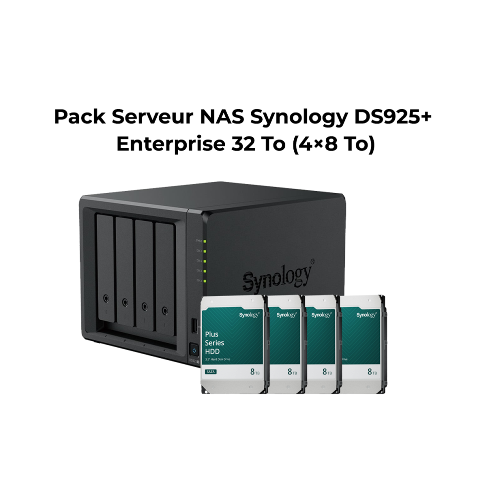Pack Serveur NAS 2 baies Synology DiskStation® DS925+ Enterprise 32 To (4×8 To)