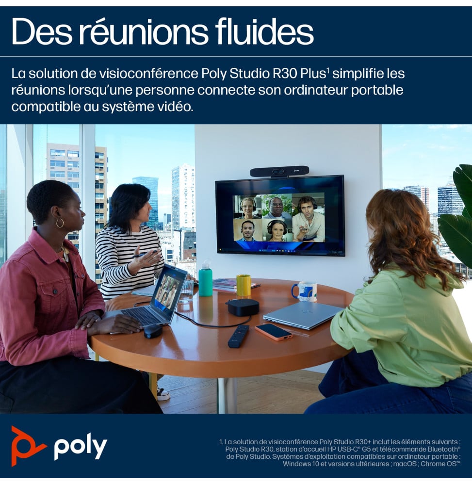 Accueil Image & Son Projection Visioconférence POLY Barre de visioconférence USB Studio R30 Barre de visioconférence USB Poly Studio R30 (842D2AA)
