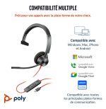 Accueil Image & Son TV & Son Casque & Ecouteur POLY Micro-casque Blackwire 3310 monaural USB-C certifié Microsoft Teams + adaptateur USB-C/A (8X216AA)