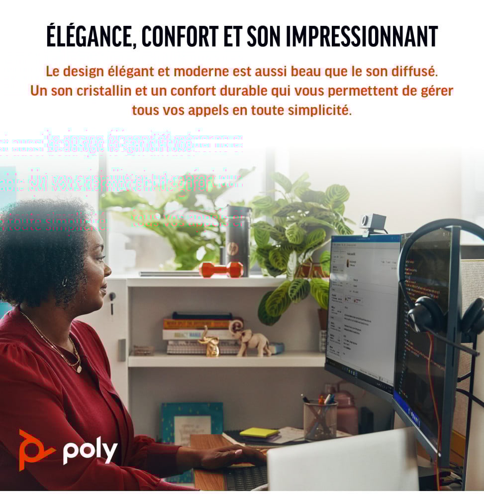 Avec son design élégant et épuré, ce micro-casque est conçu pour offrir un confort optimal et une fiabilité à toute épreuve. La qualité audio Poly est le gage d’un son clair et net. Grâce à ses fonctionnalités simples et intuitives, chaque utilisateur peut se connecter facilement à l’appareil de son choix.