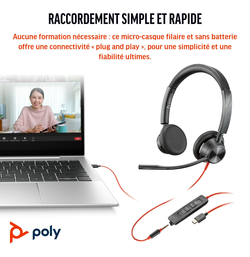 – Grâce à sa compatibilité plug-and-play avec les appareils USB, la gamme Blackwire 3300 est la solution idéale pour les utilisateurs qui doivent prendre des appels au bureau ou en déplacement. Sa conception robuste vous garantit une fiabilité à toute épreuve. C’est le micro-casque parfait pour ceux qui recherchent une solution pratique et facile à utiliser.