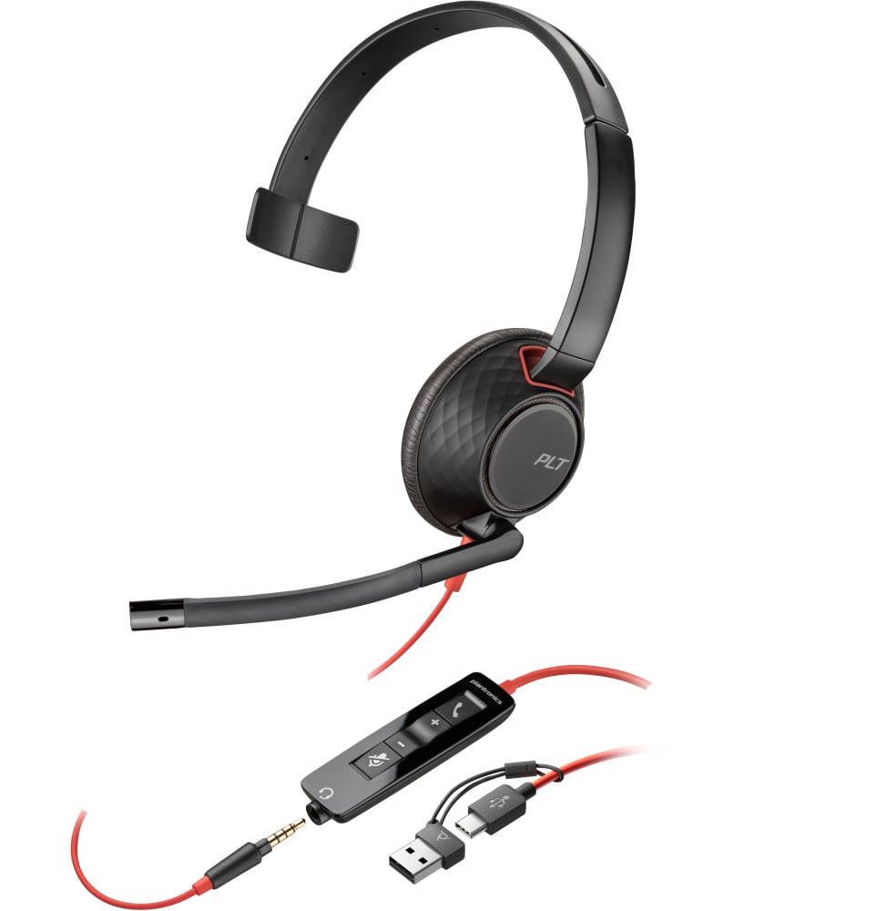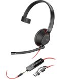 POLY Micro-casque monaural USB-C Blackwire 5210 + prise 3,5 mm + adaptateur USB-C/A (8X230AA)