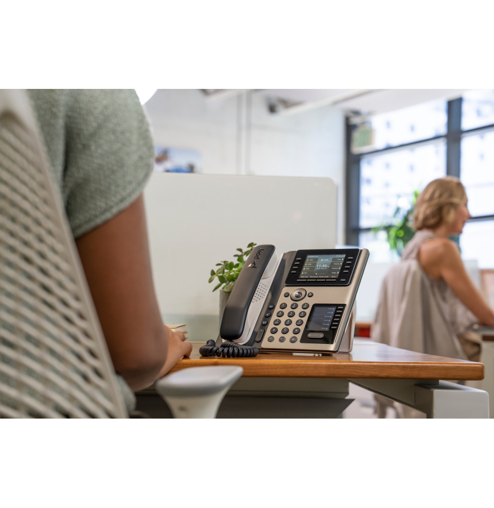 1 – Proposant des téléphones de bureau parfaits pour le bureau moderne, la gamme Poly Edge E400 offre une multitude de fonctions et de contacts. Ces téléphones associent la technologie de réduction du bruit de Poly à un design de pointe qui apporte une touche de style à n’importe quel bureau.