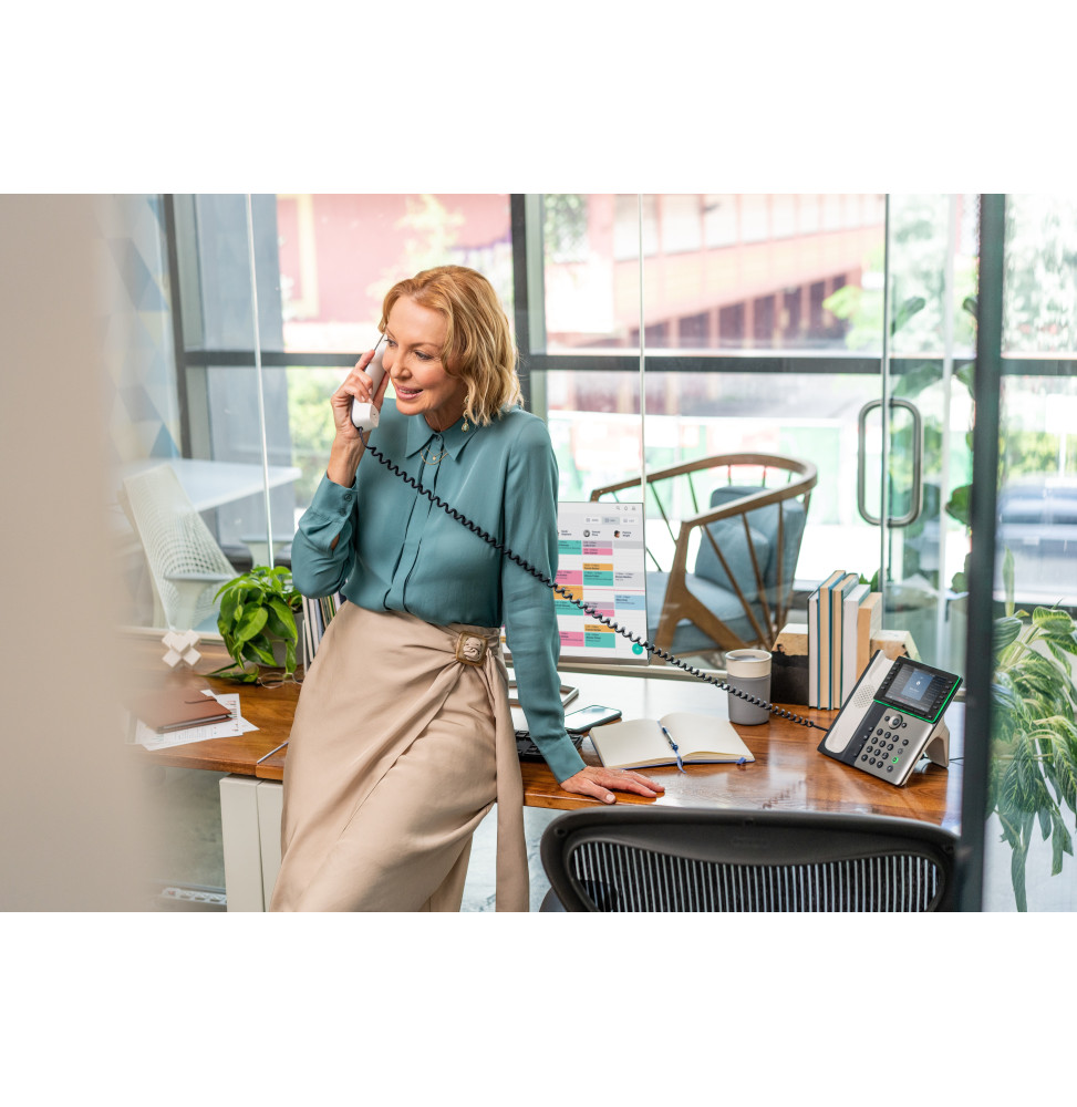 – La gamme Poly E400 offre une excellente qualité audio grâce à la technologie Poly HD Voice et un haut-parleur conçu pour améliorer les basses fréquences. Ces téléphones réduisent les bruits parasites et les distractions grâce aux technologies Poly NoiseBlockAI et Acoustic Fence.