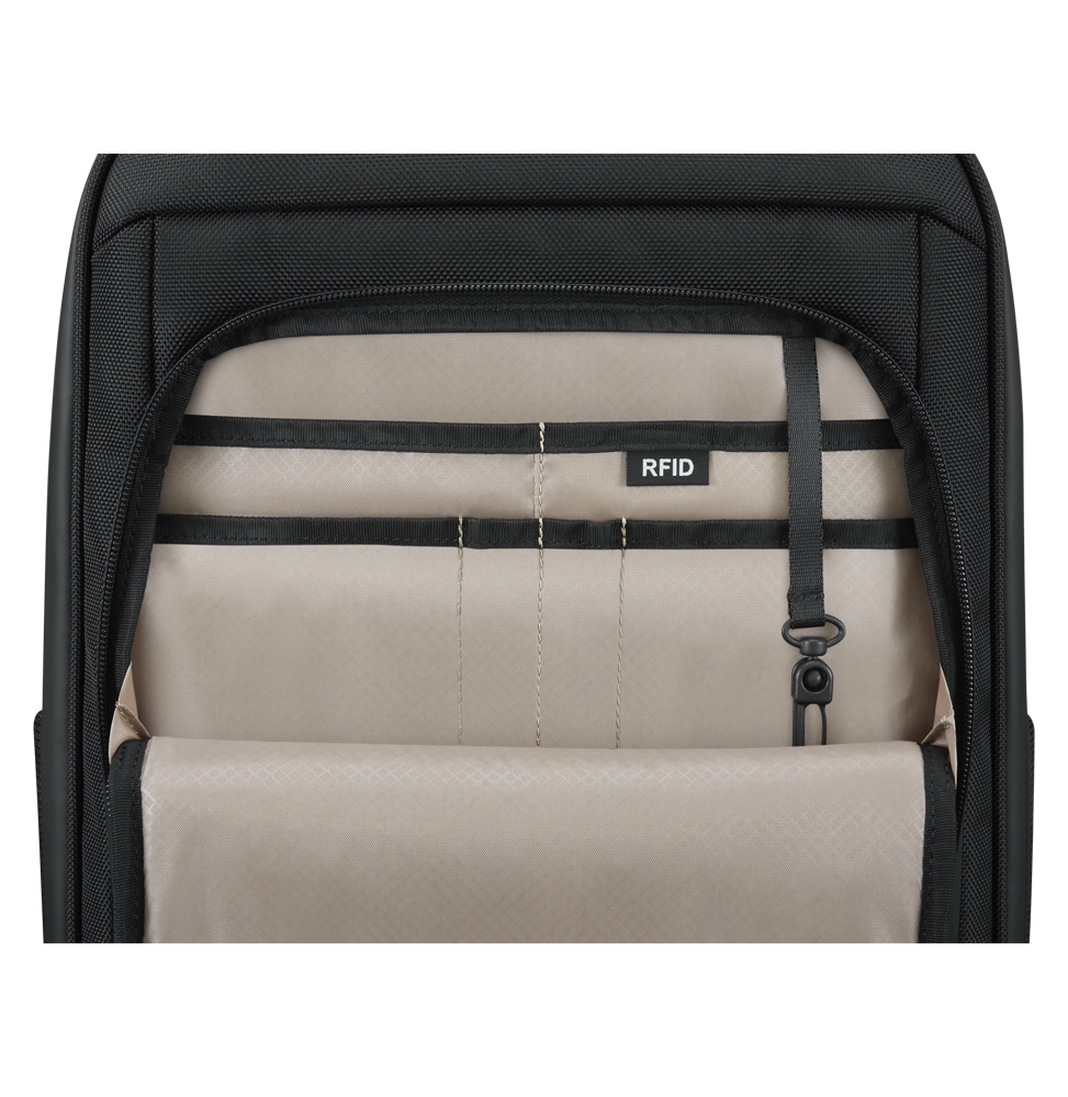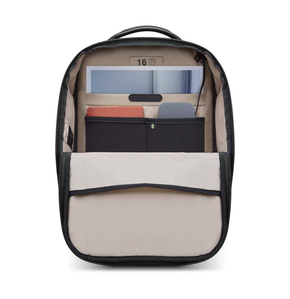Compartiment ordinateur ainsi qu'un compartiment central spacieux pour les documents et une poche interne à fermeture éclair.