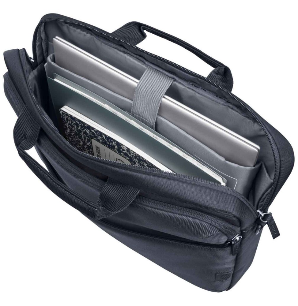 Alliez protection, style et praticité avec la sacoche HP Everyday 14″. Conçue pour les professionnels en mouvement, elle offre un compartiment rembourré qui protège efficacement votre ordinateur portable des chocs et rayures. Sa conception en polyester 600D résistant à l’eau garantit une durabilité exceptionnelle, tandis que ses multiples poches permettent d’organiser facilement documents et accessoires. Sa bandoulière amovible et sa sangle pour bagage assurent un transport confortable et sécurisé. Fabriquée à partir de matériaux recyclés, cette sacoche allie performance et responsabilité environnementale, faisant d’elle un choix idéal pour allier fonctionnalité, élégance et engagement durable au quotidien.