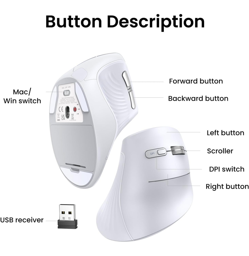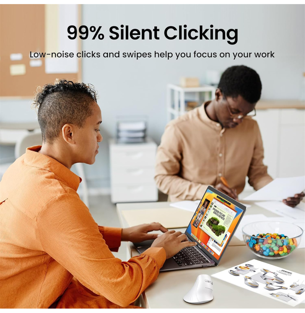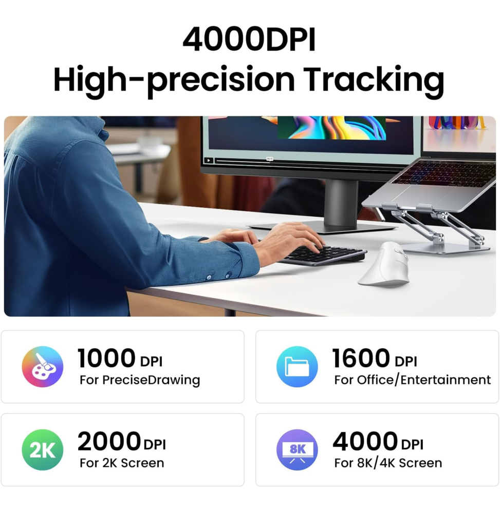 Travaillez plus confortablement et gagnez en précision avec la souris sans fil Bluetooth Ugreen Multi-mode Vertical MU008. Son design ergonomique incliné à 57° épouse la forme naturelle de la main et réduit la fatigue du poignet lors d’une utilisation prolongée. Grâce à la connexion Bluetooth et 2.4 GHz, elle se connecte simultanément à trois appareils, idéale pour basculer rapidement entre ordinateur portable, PC ou tablette. Son capteur réglable jusqu’à 4000 DPI assure un contrôle fluide et précis pour le travail comme pour la navigation. Les clics silencieux et sa conception durable garantissent une expérience confortable et fiable, faisant de cette souris ergonomique un choix intelligent pour améliorer votre productivité au quotidien.
