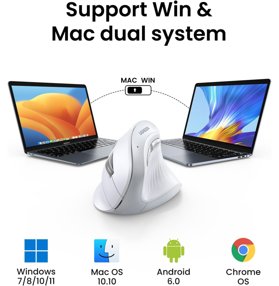 Souris sans fil Bluetooth Ugreen Multi-mode Vertical Blanc MU008 (45759)